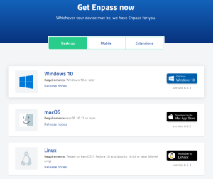 Enpassは下記の公式サイトのDownloadリンクからDesktop、Mobileを選択してお使いのデバイス用のインストーラーをダウンロードします。